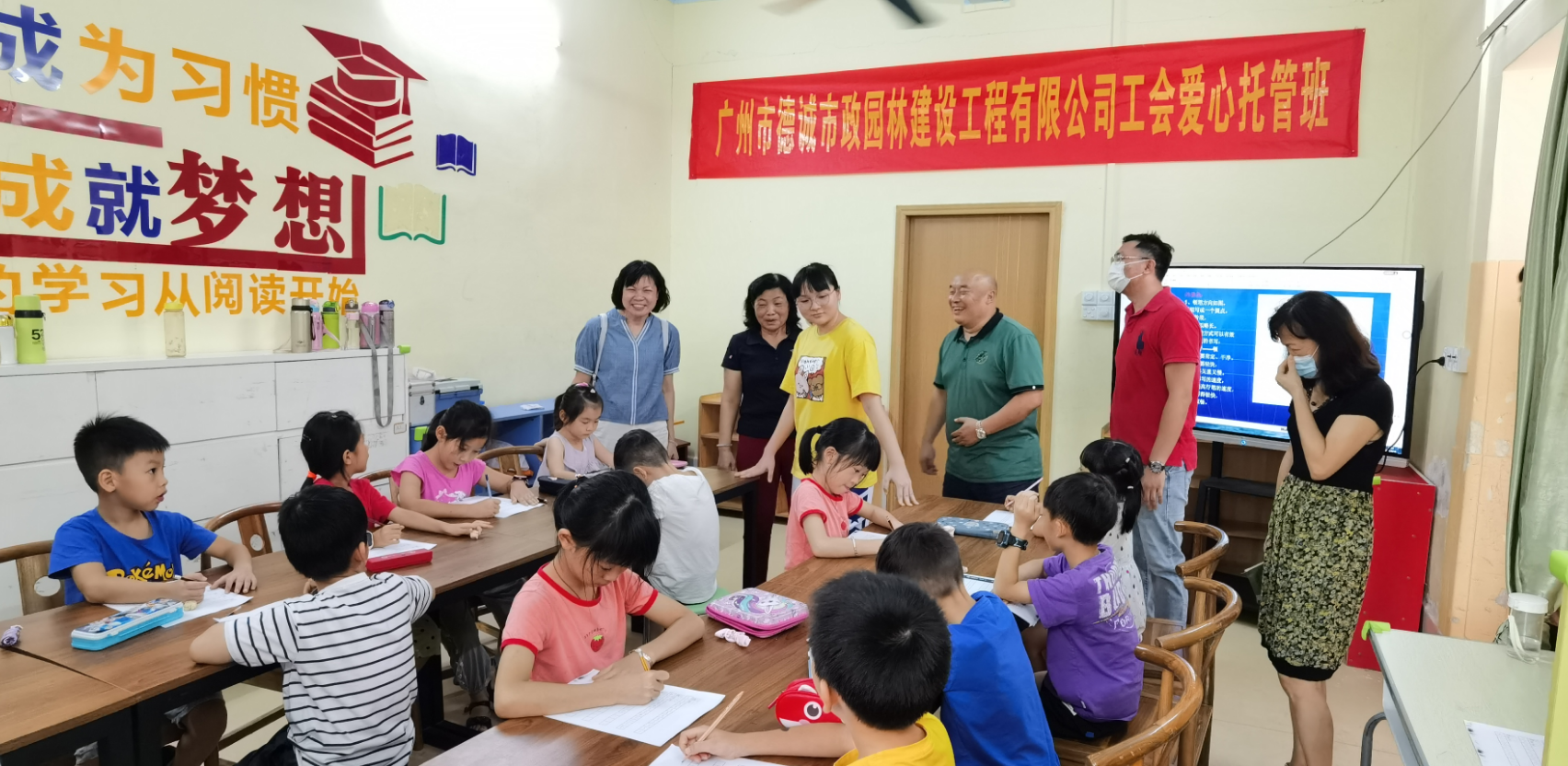 在调研广州市德诚市政园林建设工程有限公司新开设的“爱心托管班”时,调研组对该公司能够主动作为,积极协调、做好公司员工的后勤保障工作,切实帮助解决职工子女暑期托管难等举措表示肯定,同时强调,应完善托管班孩子的安全保障,请镇工会主动联系相关部门指引做好爱心托管班的各项工作,让“爱心托管班”真正解决职工的后顾之忧,使职工更好地投入工作,并真正感受到工会组织人性化的关心关怀,提升他们的获得感、幸福感、安全感。