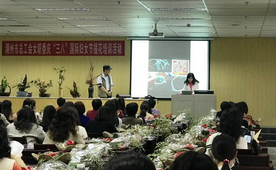 为了向广大工会女干部、女职工传递节日问候,提升广大工会女干部的综合素质,助力潮州创建国家卫生城市,3月4日,潮州市总工会女职委举行庆祝“三八”国际妇女节插花培训活动。潮州市总工会女职委委员、市总机关女同志、相关基层工会女职工工作负责人等参加。