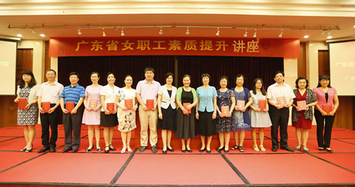 当天下午,省总女职委举行了广东省女职工教育培训师资库受聘仪式,省总工会巡视员王丽华、省总工会副主席郭开农为高级讲师代表颁发“广东省女职工素质教育培训高级讲师”聘书。随后,中山大学教授、博士生导师李萍作了“中国人的家庭与伦理”专题讲座,受到广大女职工的热烈欢迎。