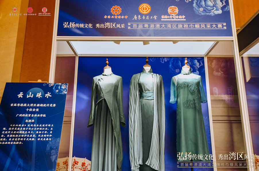 决赛现场设置了旗袍展示长廊,展出了首届粤港澳大湾区旗袍设计竞赛的部分获奖作品。