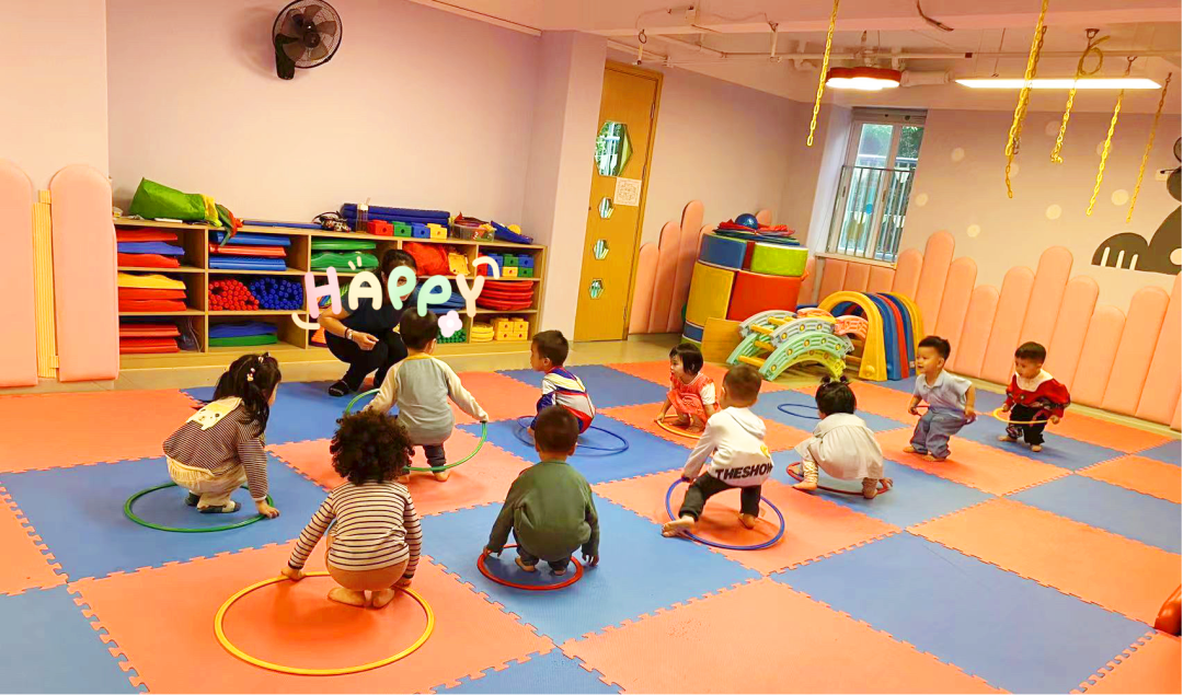 ■国家税务总局广东省税务局托育中心的孩子们在进行感统训练 单位供图