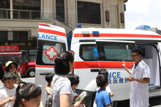 “救护车展现”环节中,孩子与家长近距离对120车辆结构、设备有了进一步的了解,纷纷表示活动环节设置充实有趣。