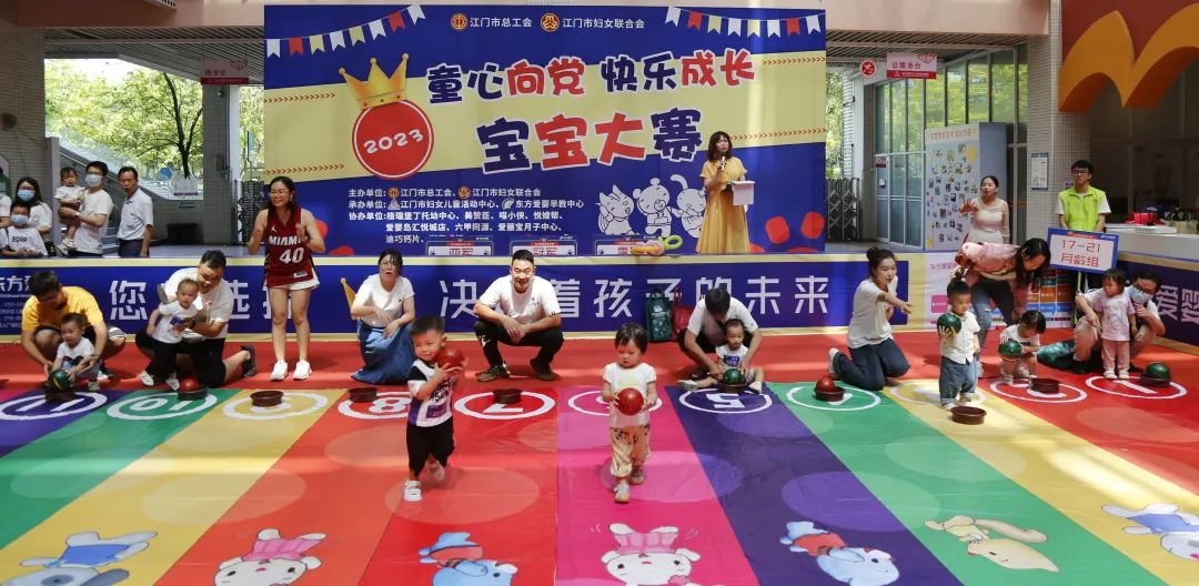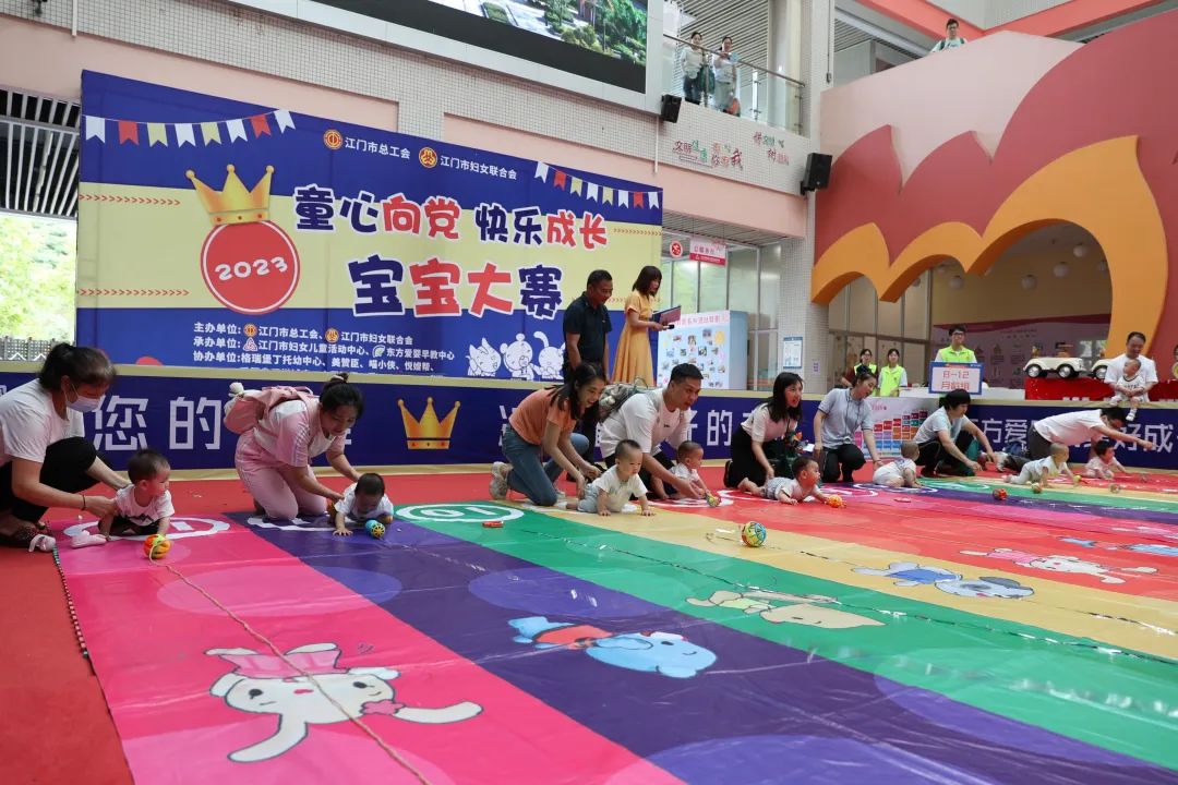为深入学习宣传贯彻党的二十大精神, 进一步提高婴幼儿家长科学育儿水平,助力江门儿童友好城市建设,在“六一”国际儿童节到来之际,5月28日上午,由江门市总工会、江门市妇联主办,市妇女儿童活动中心、东方爱婴早教中心承办的“童心向党 快乐成长”宝宝大赛在市妇儿中心举行。