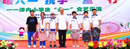 在洋内小学,区总工会慰问组为洋内小学赠送了一批书籍,为全校350名师生赠送牛奶,还为89名非广东籍学生送上书包,将党委、政府和工会组织的温暖送到职工及其子女的心坎上。慰问活动结束后,与会同志、学生家长和同学们一起观看了洋内小学师生表演的文艺汇演和区交警大队的交通安全展示板。