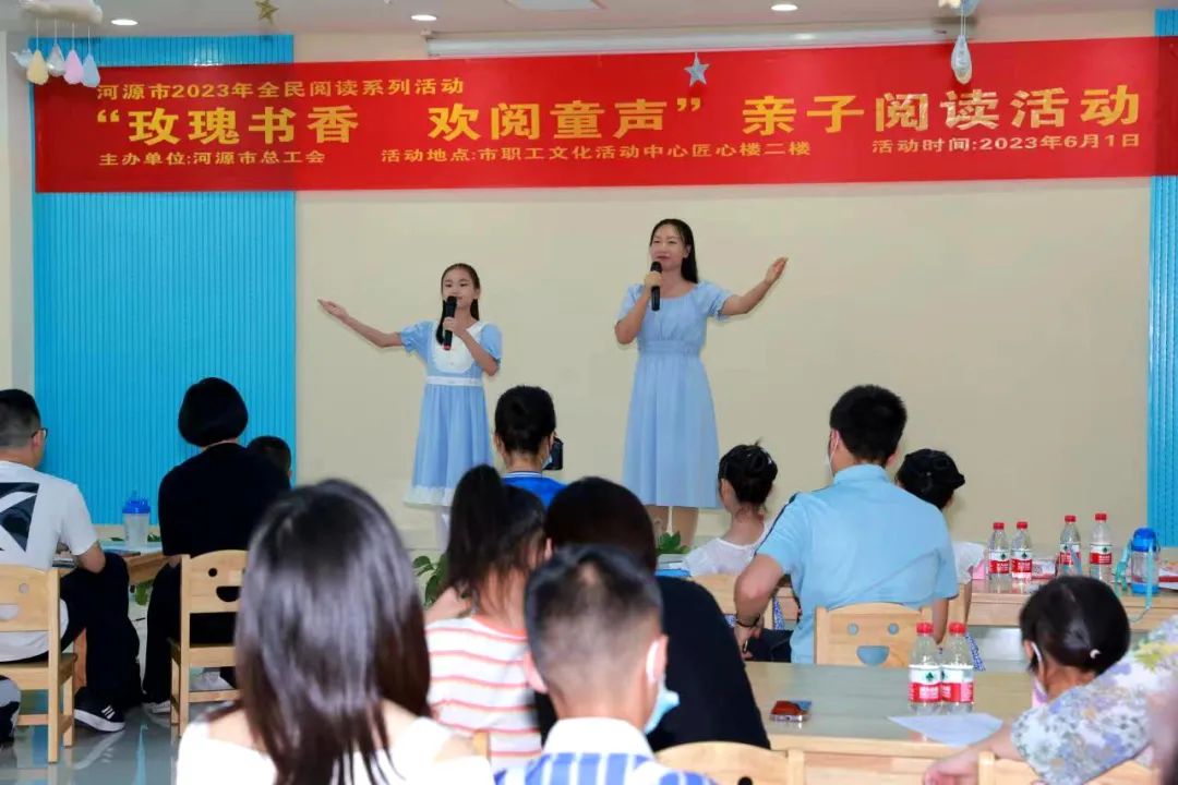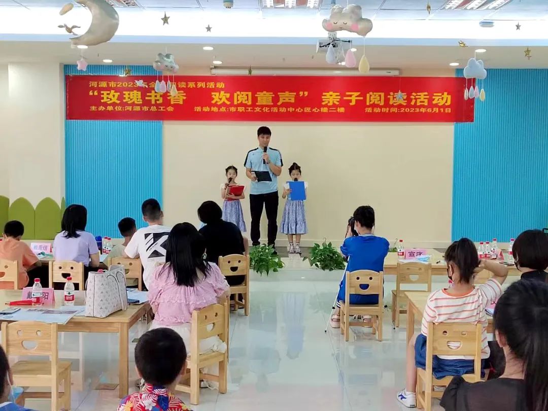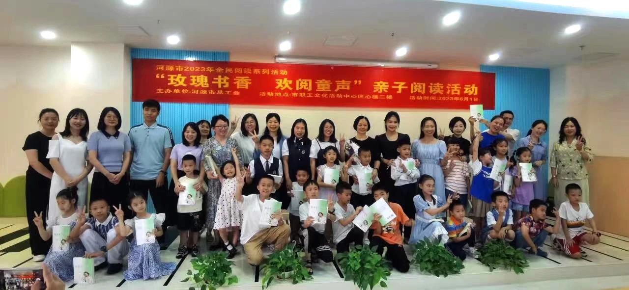 6月1日下午,河源市总工会联合市图书馆在市工人文化宫职工自助图书馆开展主题为“玫瑰书香,欢阅童声”亲子阅读活动,来自各基层工会的17个职工家庭共40余人欢聚一堂,共同阅读,欢度“六一”。