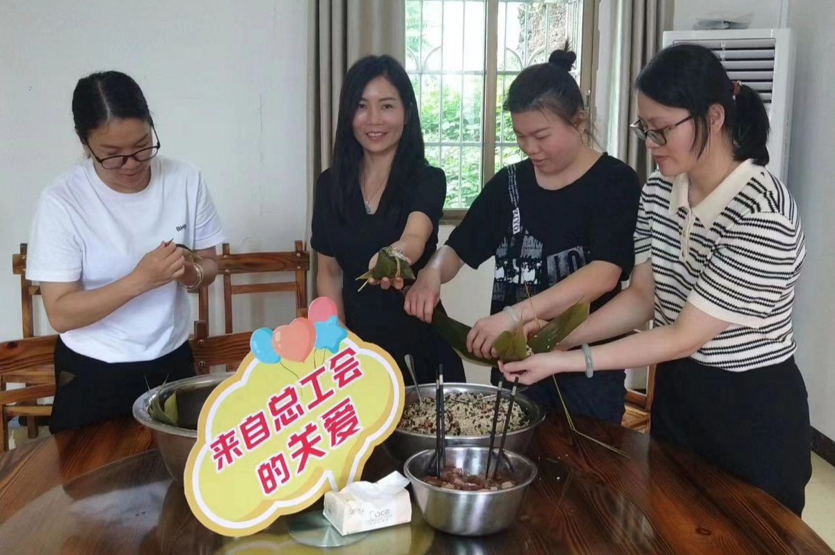 近日,韶关新丰县总工会以“传承传统技艺·弘扬端午习俗”为主题,组织女职工在职工饭堂开展包粽子体验活动,充分挖掘端午节深厚文化内涵的同时,也让全体干部职工感受到节日的氛围和工会大家庭的温暖。