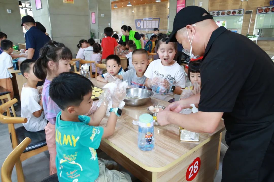 东莞监狱暑期夏令营特别开设了烘焙课程,警娃们跟着老师的讲解和演示,有模有样地制作小甜品,热闹的美食课堂不仅增强了警娃们的动手能力,也能让孩子们在制作食物的过程中体会亲手劳作的成就感,享受别样的暑期快乐。