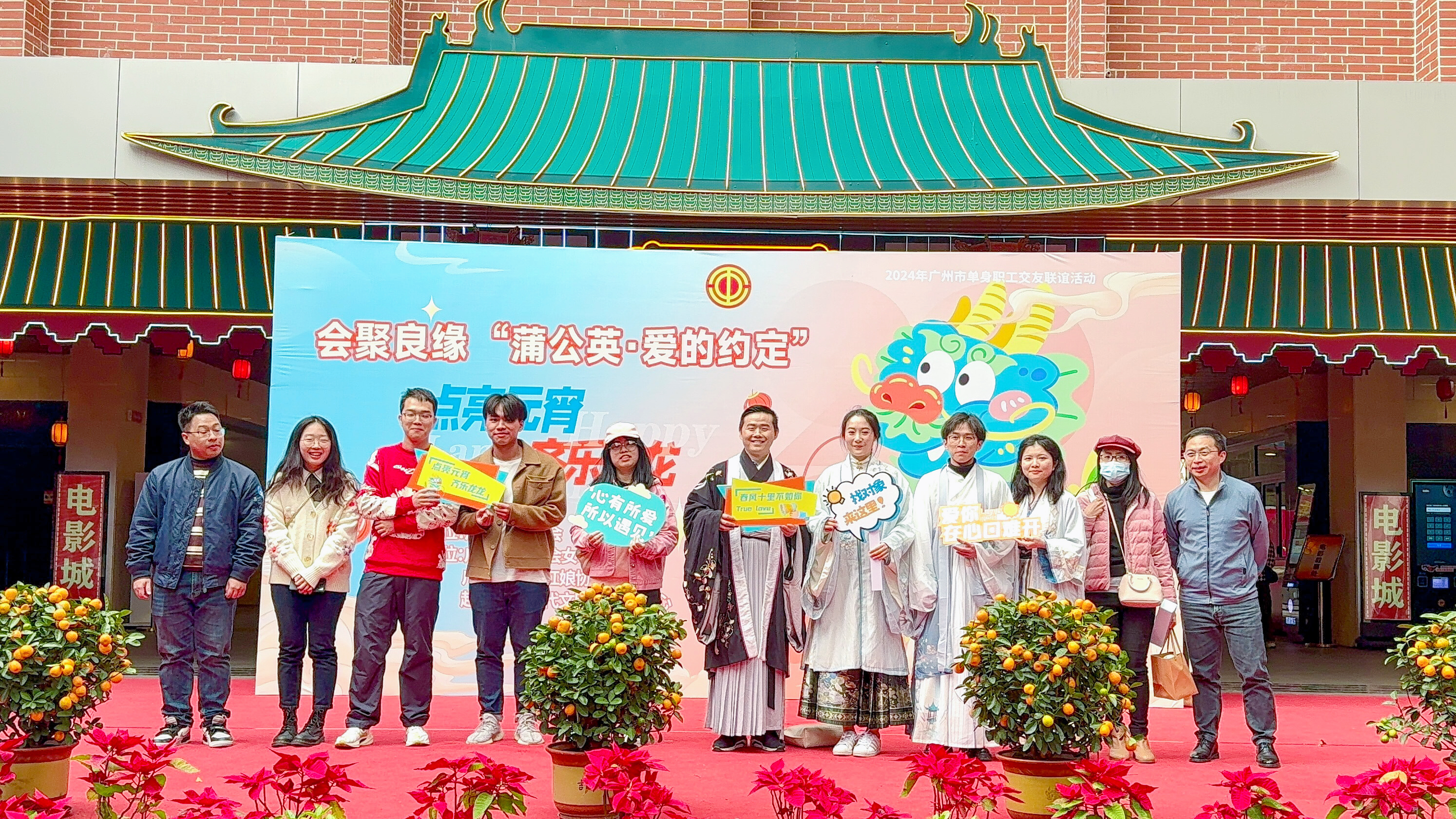 2月24日,由广州市总工会主办,广州市总工会女职工委员会、广州市职工红娘协会、越秀区新时代文明实践分中心承办的会聚良缘·“蒲公英·爱的约定”之“点亮元宵 齐乐龙龙”广州市单身交友联谊活动在市一宫拉开帷幕。本次活动以“逛吃庙会+双喜掂车+繁花音乐会”的形式,打造联谊全新体验,共度元宵佳节。