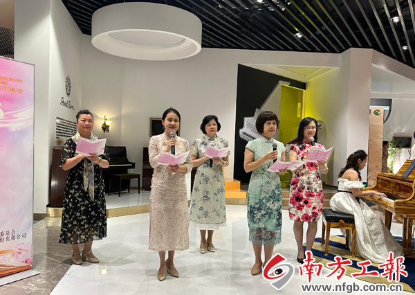 广州市女职工在琴声中诵读美文。全媒体记者郗建新/摄