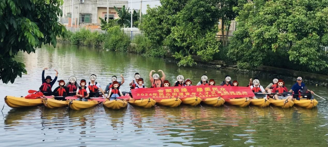 本次联谊活动以“绿美”为基,创新融合青年联谊交友形式。青年职工化身“河道夫”,撑起双人皮划艇,既体验了皮划艇的操作乐趣,又领略了绿美民众的自然风光。随后,大家沿着新平乡青年突击队公园步行到民众街道“绿美青年林”,携手浇灌养护树木、捡拾林边垃圾,用自己的双手践行环保公益,为“绿美民众”增添青春的底色。