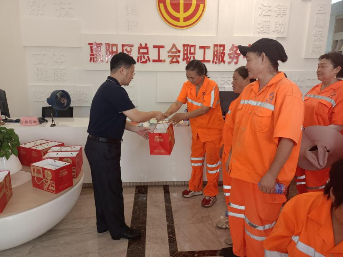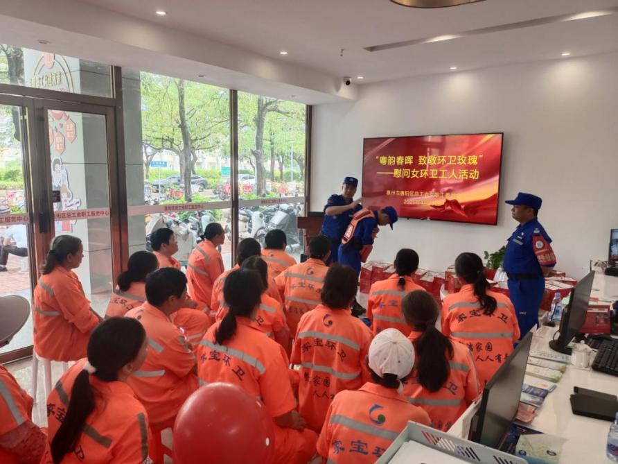4月23日,惠州市惠阳区总工会在区总工会职工服务中心组织开展“粤韵春晖 致敬环卫玫瑰”慰问女环卫工人活动,通过应急知识普及、物资慰问等形式,为辛勤劳动的“城市美容师”送去温暖与关怀。