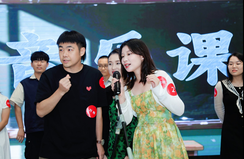 此次活动以“青春有你·缘定今朝”为主题,模拟了重返校园的场景,设置了“班级初相识”“语文课”“英语课”“音乐课”“数学课”“体育课”“零食大食会”等多个活动环节。青年职工根据手环颜色分成4个“班级”就座,桌上摆放着各式各类寄托着青春回忆的小零食、小玩具,一波“回忆杀”扑面而来。“新生课堂”上,大家在猜成语、猜歌名等游戏中展示自我、相互交流。下课铃声响起,大家可以利用“课间十分钟”向心仪对象递纸条加“好友”,轻松愉悦的氛围中,男女青年逐步敞开心扉,气氛迅速升温。最后一节“体育课”,所有青年移步落日营地,找到属于自己的一张诗句卡片,再寻找到对应诗句,在互动交流中寻觅同频知音,最终现场有14对男女青年职工成功牵手。