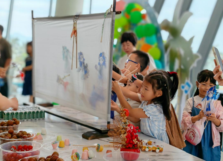 5月31日,汕尾供电局工会在保利金町湾鲸鱼生活馆二楼举办“童趣六一 非遗有我”亲子皮影制作活动。本次活动以皮影戏为载体,通过亲子互动的方式,让职工与孩子们共同感受传统艺术的魅力,在欢声笑语中弘扬非遗文化。活动中,家长与孩子们默契配合,从设计角色形象,再到上色装饰,每一步都充满创意与童趣。孩子们充分发挥想象力,绘制出孙悟空、哪吒等生动造型。经过近两小时的创作,一个个色彩斑斓、造型独特的皮影作品诞生,小朋友们手持自制皮影,在幕布后操偶,配合简单的台词与音乐,演绎出《西游记》片段等充满童真的故事。稚嫩的动作与投入的表演,赢得了阵阵掌声。