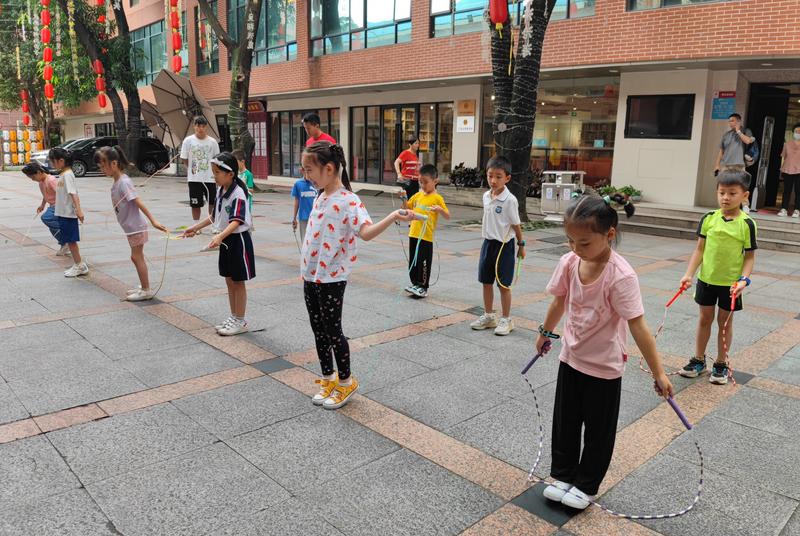 今年是广州市工人文化宫首次推出暑期托管服务,其尝试有效整合工人文化宫已有的场所和培训课程资源。记者看到,在体育锻炼课程中,孩子们能走出教室,来到工人文化宫一楼的空旷场地跳绳;舞蹈、非洲鼓、编程等课程以及观影活动可以直接利用工人文化宫已有的课程资源和场所;而在每周一次的红色研学活动中,孩子能直接走入越秀区区内红色景点学习。