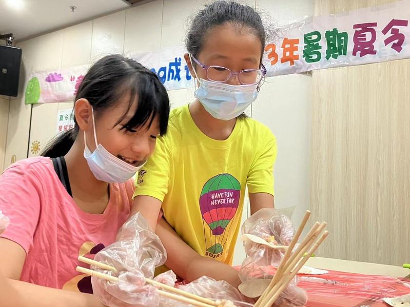 童心夏令营的社工告诉记者,这次的活动是“五社”联动,由社区、社会组织、社工、社会资源以及社区自治组织共同推动。其中值得关注的是,活动的场地在梅花村街党群服务中心,该场地由街道免费提供使用,为降低托管费用拓展了多一点可能。此外,社工和志愿者也参与其中。记者现场看到,在一场包饺子的劳动课程中,4名志愿者陪同孩子参与,她们中有大一的学生,也有60多岁的老人,而教授街舞的老师是一名中学生志愿者。