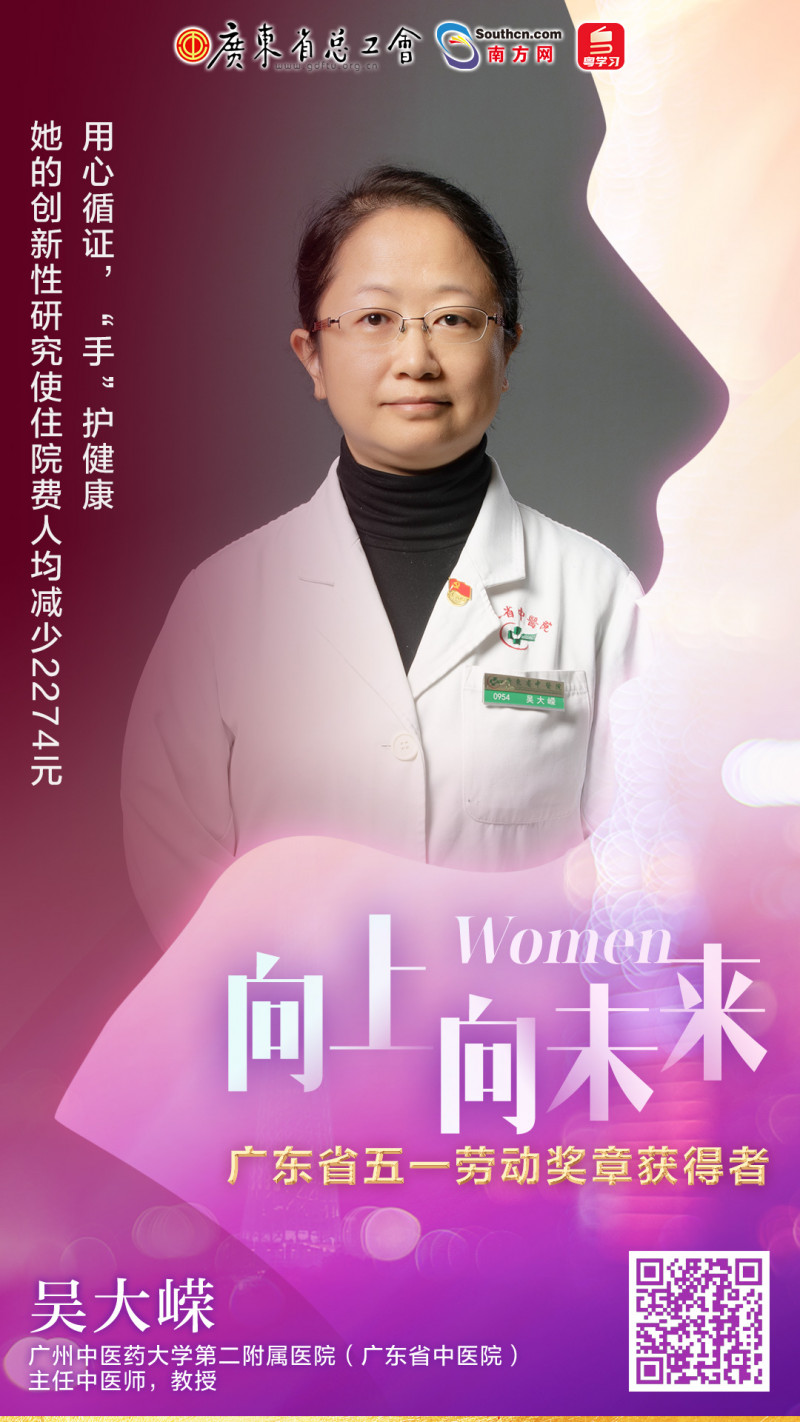 吴大嵘长期致力于循证中医药领域研究工作,擅用中医药综合疗法为患者解除病痛。她率先在国内进行中医及中西医结合证据向实践转化的方法学研究,创新性地引入马尔可夫决策过程探索符合中医辨证思维的循证方法,创立中医诊疗序贯决策与共识聚类技术,实现了该领域技术上的跨越与突破。