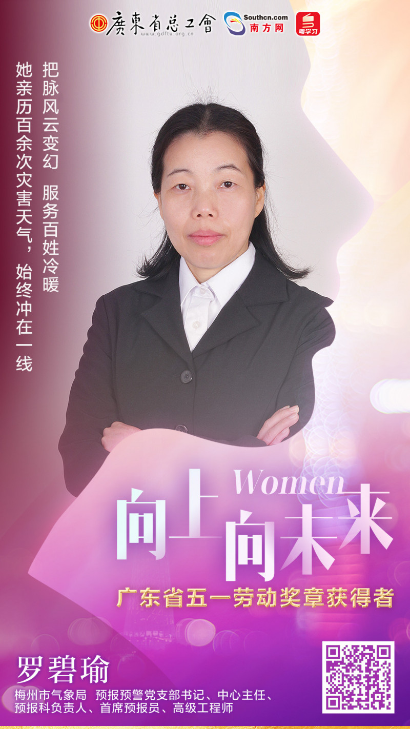 从事天气预报服务与科研工作27年的她,亲历“5.17”“6.22”“8.31”“碧利斯”“格美”等百余次灾害天气,始终冲在一线。坚持“人民至上、生命至上”的理念,罗碧瑜带领大预报服务平台人员第一时间为市(县、区)防灾部门提供准确有效的气象灾害防御决策参考、及时向社会公众发布灾害天气预警信息,以实际行动为筑牢梅州气象防灾减灾第一道防线添砖加瓦。