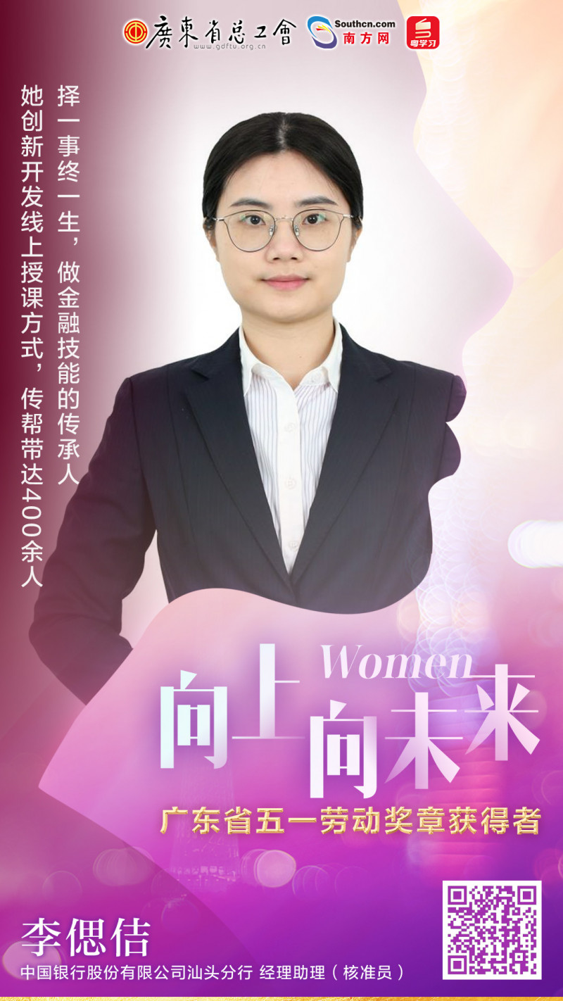 “业务熟、反应快、数据准、服务优”是她的奋斗理念。银行业务员的工作看似枯燥,她却从中找到乐趣,锐意进取、担当作为,逐步成长为一名多面能手。工作期间,李偲佶连续两年获得中国银行总行五星级柜员荣誉称号,被授予省行级、总行级“中国银行业务技能标兵”荣誉称号,并先后被聘为中国银行汕头分行内训师,省初级讲师,总行级内训师。疫情期间,她创新开发线上授课方式,改良实操学习方法,先后传帮带人次达400余人。