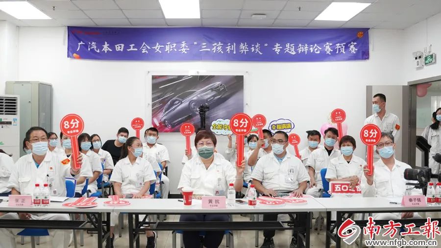 去年,三孩生育政策推出后,职工们热议不断。广汽本田工会立即在工会微信平台开展“六一遇上三孩政策,你怎么看”投票活动,不到3小时吸引了700余名职工参与讨论。随后,工会女职委又紧急召开沟通会,集思广益,决定用大家喜闻乐见的辩论赛形式让职工说出自己的心声。为增强女职工的参与感,规定每个辩论队必须有两名或以上的女职工,还特别邀请公司工会历年女职工之友、各厂区工厂长、人事总务部、总经理室等相关部门的部长担任预赛评委。短短两周时间,在广汽本田黄埔、增城和开发区三个厂区,由35个分会组成的30支辩论队报名参赛。预赛10天20场比赛,400多名职工作为组织者、辩手、大众评委等参与进来。