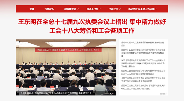 这是中工网成功承办中国工会十五大、十六大、十七大新闻中心网站后,连续第四次承办中国工会全国代表大会新闻中心网站。