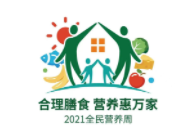 为提高社会公众对食物营养、平衡 膳食基本原则的认识,推动国民营养健康饮食习惯的形成和巩固,做好《中 国居民膳食指南》的宣传教育,2021全民营养周(5月17日-23日)以“合理膳食 营养惠万家”为核心理念,将“家”作为此次活动标识的核心符号为广东人民普及营养健康知识。