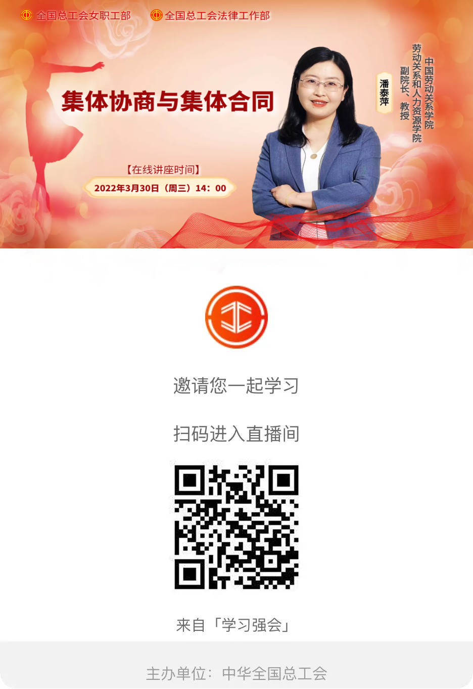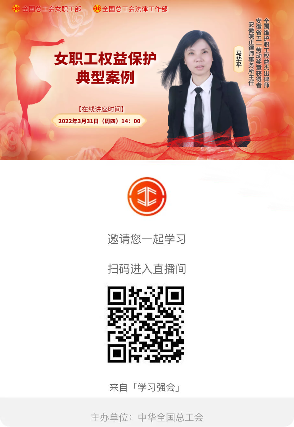 2022年是深入实施“八五”普法的关键一年。全国总工会女职工部与法律工作部以贯彻实施新修改的《工会法》、新编制的《中国妇女发展纲要(2021-2030年)》和《女职工劳动保护特别规定》颁布十周年为契机,联合在“学习强会”平台上组织以《工会法》《女职工劳动保护特别规定》、女职工权益保护专项集体合同、以案释法等为主要内容的普法讲座。