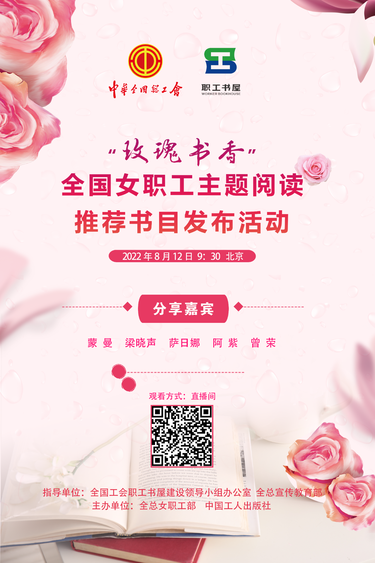 按照职工书屋阅读活动工作部署,为进一步加强女职工思想政治引领、促进素质提升、推进家庭文明建设,全总女职工委员会办公室研究决定,在全国范围内开展第二届 “玫瑰书香”全国女职工主题阅读活动,并于8月12日上午9:30全网直播,推荐阅读书目。