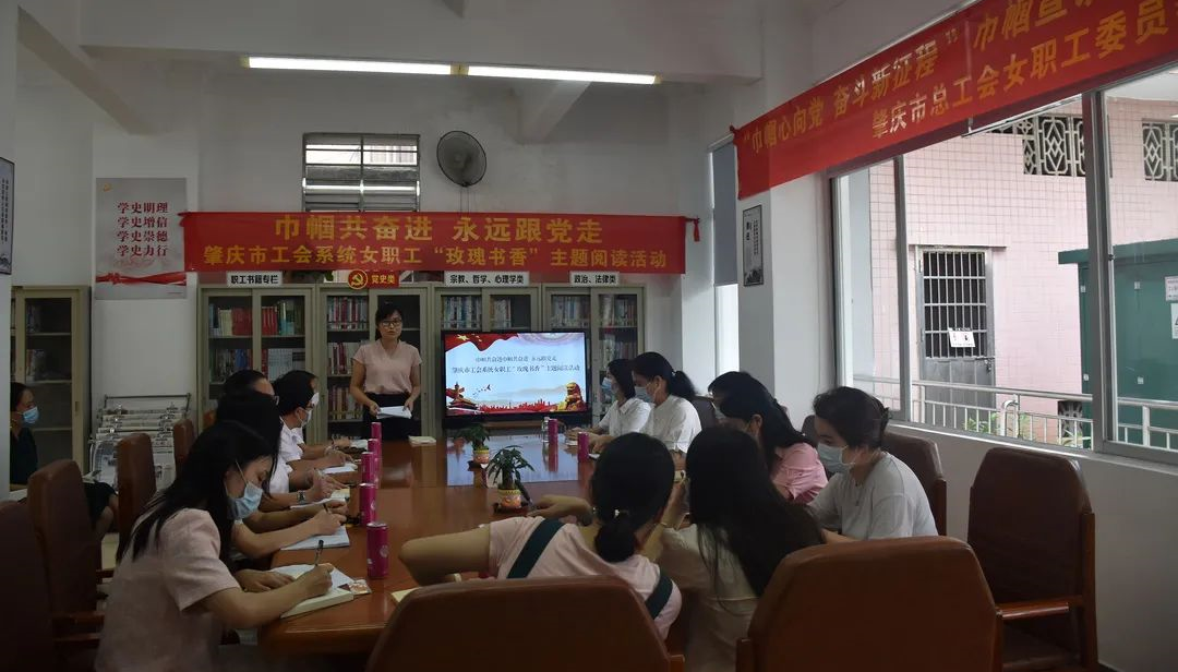 为做好肇庆市总工会系统女职工思想政治引领工作、促进女职工素质提升、持续推进家庭文明建设。在中国共产党成立100周年之际,肇庆市总工会女职工委员会于8月6日开展肇庆市工会系统女职工“玫瑰书香”主题阅读活动。市总工会党组成员、副主席、女职委主任罗军出席活动并讲话,广东省劳动模范、肇庆市广播电视台广电融媒体中心电视时政新闻编辑部副总监李必辉担任阅读活动领读人,市工会系统20多名女职工参加了活动。
