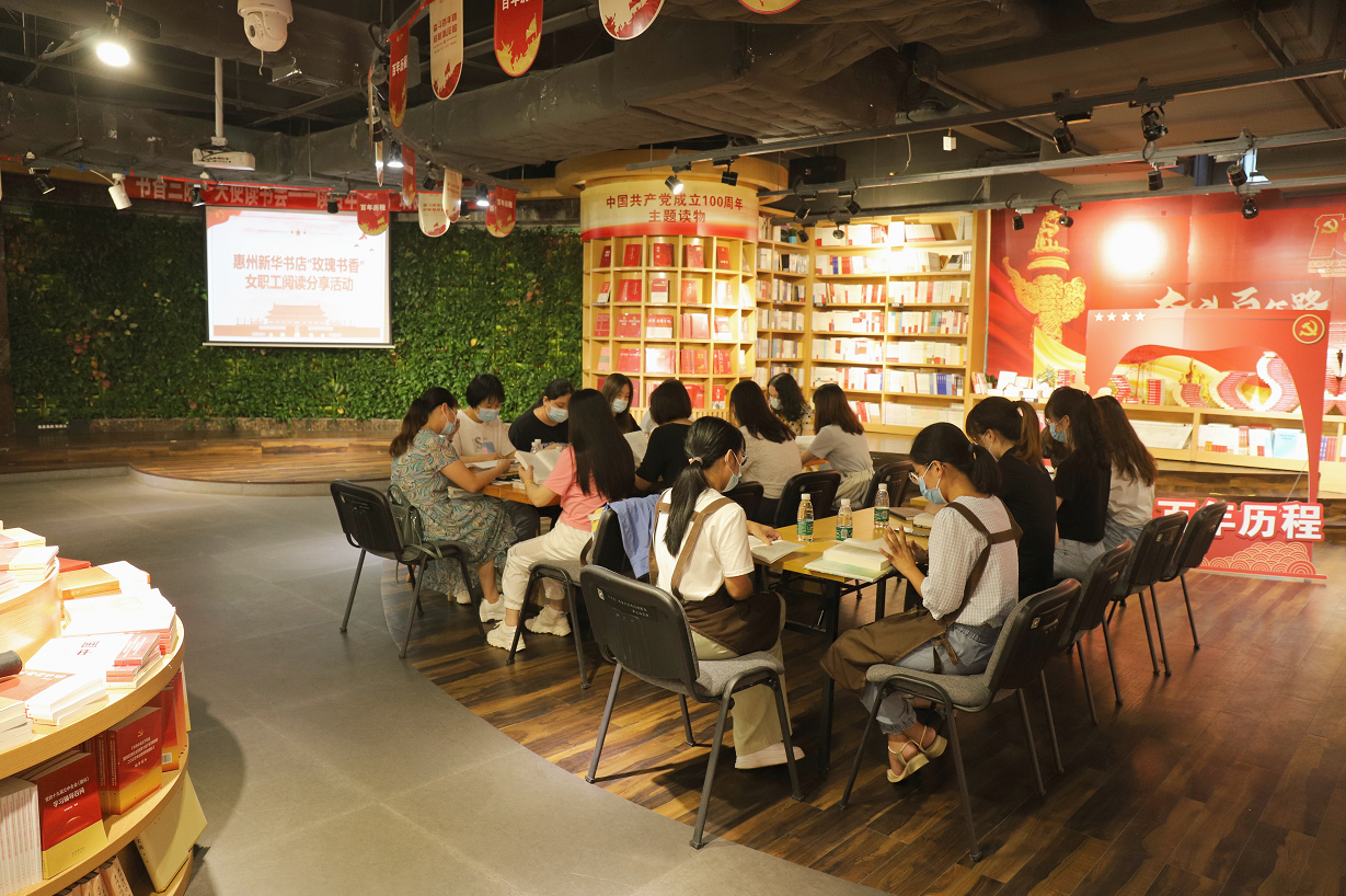惠州市总工会女职工委员会围绕“巾帼共奋进 永远跟党走”主题,积极组织、发动各基层工会开展活动,7月27日,惠州市新华书店有限公司全体女职工在惠州市新华文化广场4楼开展“玫瑰书香”女职工主题阅读活动,活动分为诵读、分享阅读感受、小结三个环节,在场女职们工纷纷表示通过本次阅读活动,不仅增强了党性修养、提升了政治觉悟,还对全面认识自己起到了重要的作用,并表示将持续深入学习、坚定信仰、提高素质。