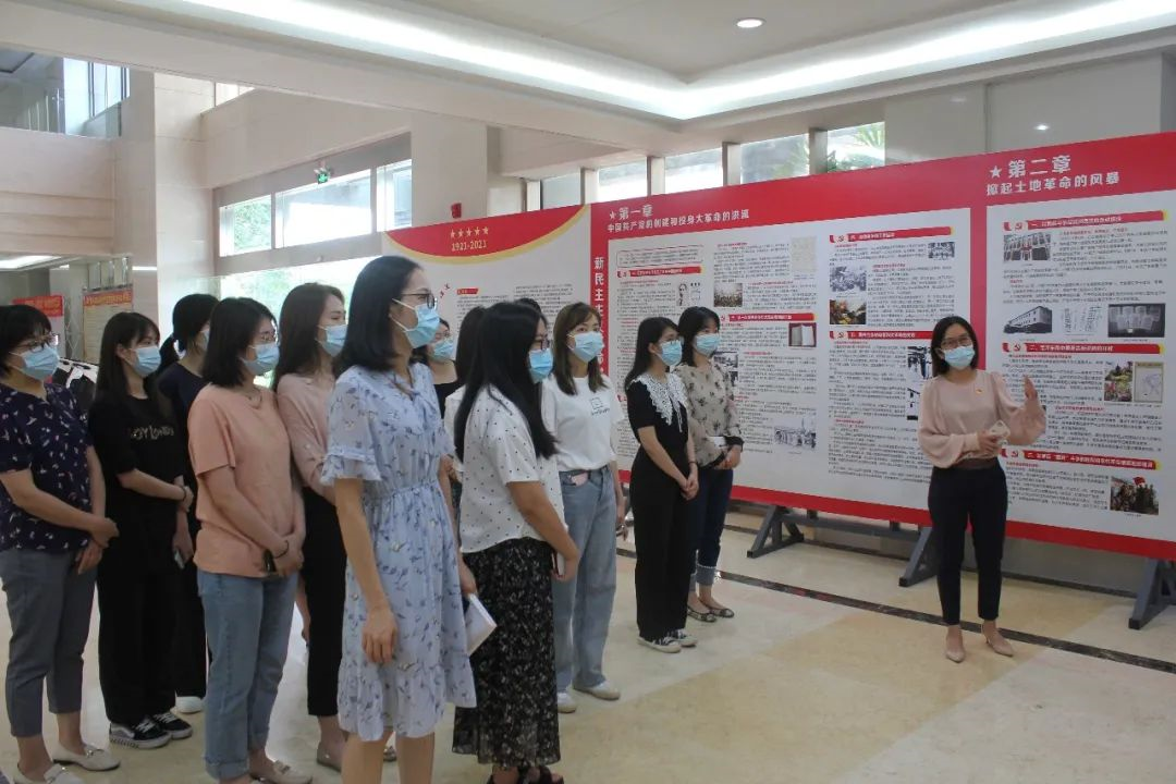 活动中,女职工参观了惠南科技园“学党史 跟党走”中国共产党党史及成就系列展览,在陈宜静的讲解下一同回顾了建党初期、土地革命、抗日战争、解放战争等时期党的发展历史,引导女职工始终铭记党的光辉历程,感悟党的初心和使命。